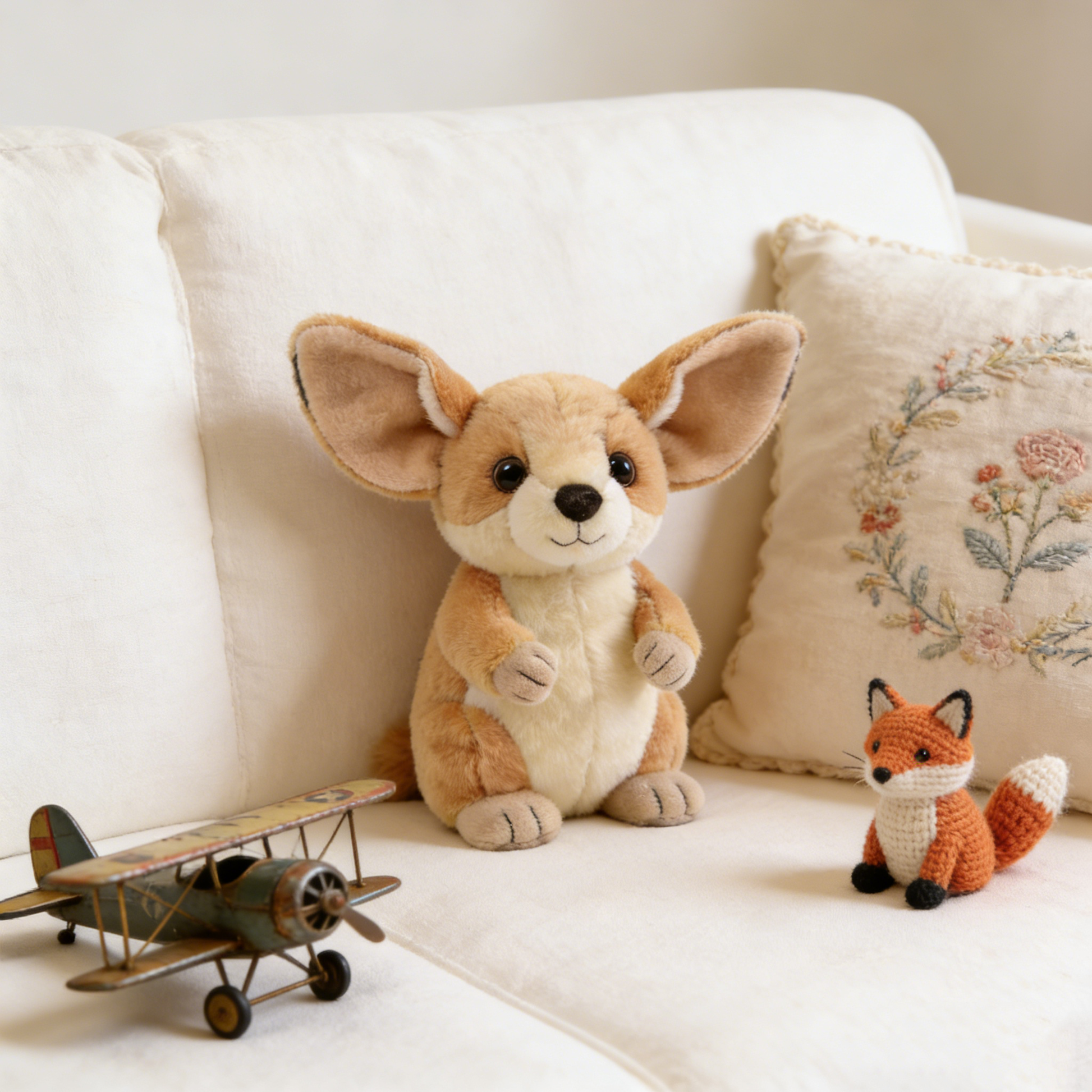 Meet your new pocket-sized companion! This adorable Fennec Fox plush brings desert charm straight into your arms with its signature oversized ears and soft, huggable design. Perfect for snuggling during movie nights, displaying on shelves, or gifting to fellow fox enthusiasts, this little cutie captures all the quirky personality of its wild counterpart. Crafted with premium plush materials, it's gentle enough for kids and irresistible for collectors. Whether you're a wildlife lover or just need something impossibly cute to squeeze, this fennec fox is ready to become your favorite cuddle buddy.