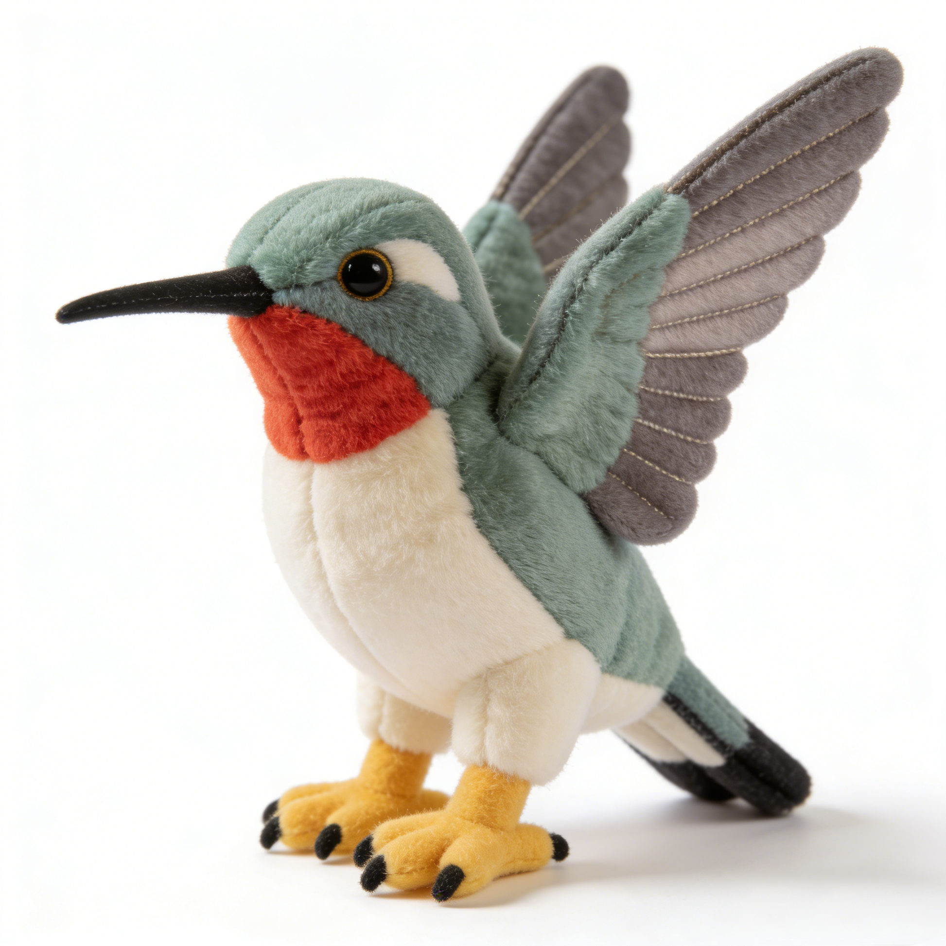 Meet your new tiny companion! This adorable hummingbird plush captures all the magic of nature's speediest flyer in soft, huggable form. Dressed in vibrant jewel-toned feathers—emerald greens, sapphire blues, and ruby reds—this little guy brings tropical charm to any room. Perfect for snuggling, displaying on a shelf, or gifting to wildlife lovers of all ages. Lightweight and cuddly, it's the sweetest way to celebrate these magnificent creatures!