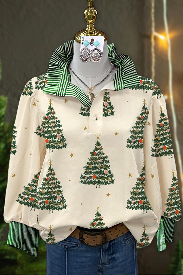 Stay on trend this season in our new casual, mandarin collar blouse. We especially love the christmas fabric and think this piece will be a new favorite in your closet!
